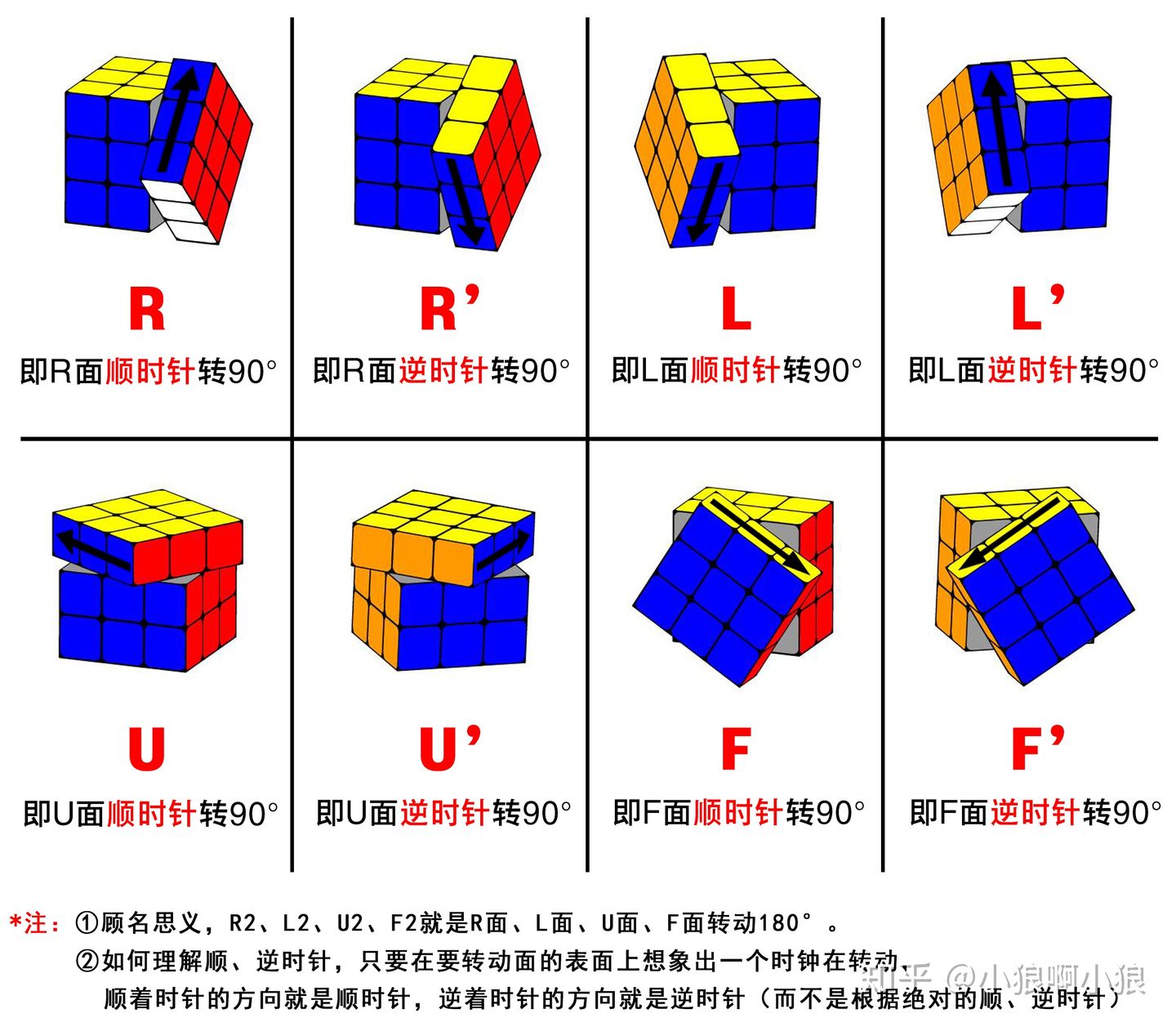 ★ 右手小鱼公式,其顶层始终是顺时针(U)转;(巧记谐音:右→U)
