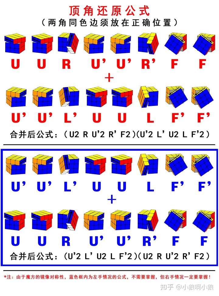PS:这个公式实际上就是左右手公式的变形,区别就是顶层每次转两下,最后又多了转两次“F”的步骤,下面加粗的字体即为左右手公式